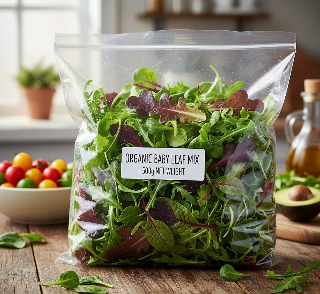 • 品種のミックス: レタス類(ロロロッサ、ロメインなど)、ホウレンソウ、ミズナ、ルッコラ、ケール、ビートなど、数種類の野菜の若い葉が混ぜられています。