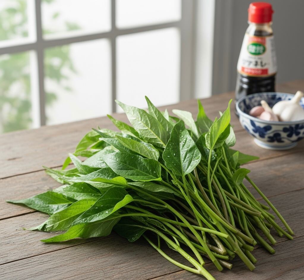 • 食感:茎の中がストローのように空洞(空芯)になっているのが最大の特徴で、これが名前の由来です。この空洞のおかげで、食べたときにシャキシャキとした心地よい食感が生まれます。葉は少しぬめりがあります。